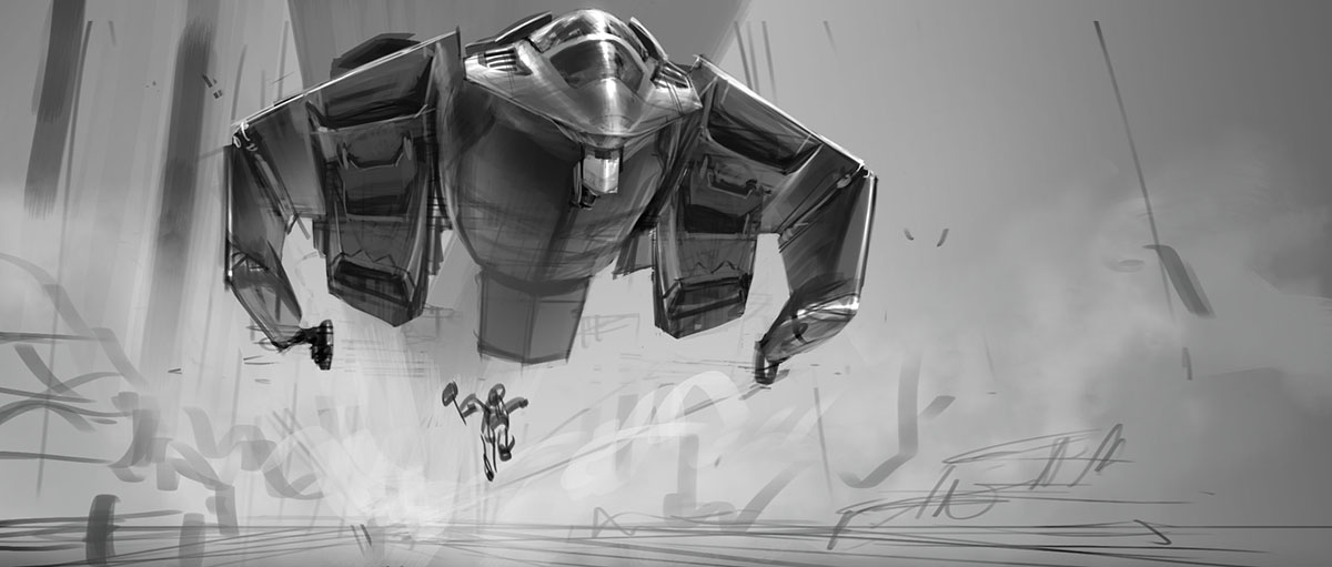 Ultimately Production Designer James Chinlund was looking for a more brutal, ground attack craft aesthetic and the need to cross the globe in an hour was no longer a priority, so the aerodynamic qualities were downplayed and I pursued this concept that's a little more A10 Warthog-like: